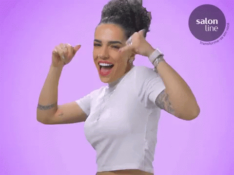 Jujufranceschi Juliana excitedly dancing and showing off her curly hair in a white crop top.