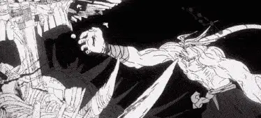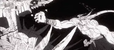 Intense scene from Jujutsu Kaisen featuring Sukuna and Mahoraga in a dark setting.
