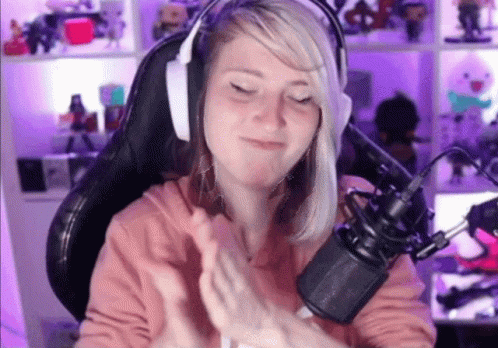 Streamer Julez Julezow claps and smiles enthusiastically while wearing headphones during a live stream.
