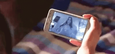 Juliana appears on a phone screen, held by a person, making a playful gesture during a Facetime call.