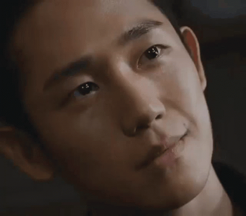 Jung Hae In gives a subtle, charming smirk, looking upwards with a thoughtful expression.