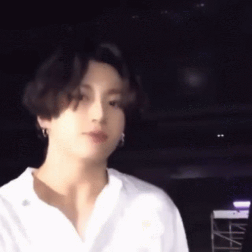 Jungkook showing a mad or annoyed expression with dark hair and earrings.