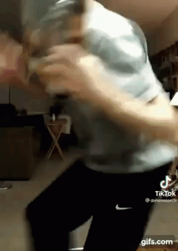 Junkyard Dog Chain And His Crown dancing energetically in a living room, captured in a blurry video.