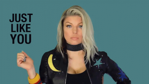 Fergie in a black jacket and choker, with 'JUST LIKE YOU' text displayed prominently.