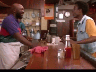 Chris Rock in a diner scene from 'I'm Gonna Git You Sucka', asking for 'just the one'.