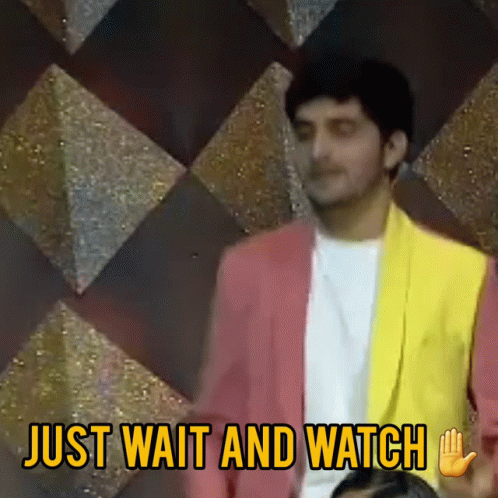 Nachiket Lele from Indian Idol gestures "Just Wait And Watch" in a pink jacket and yellow vest.
