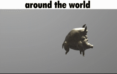 A Kaban boar statue is humorously spun around in the air, creating a 'around the world' effect.