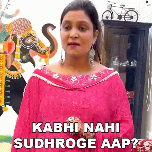 A woman in a pink dress asks Aeshna, 'Will you never improve?' with a playful expression.