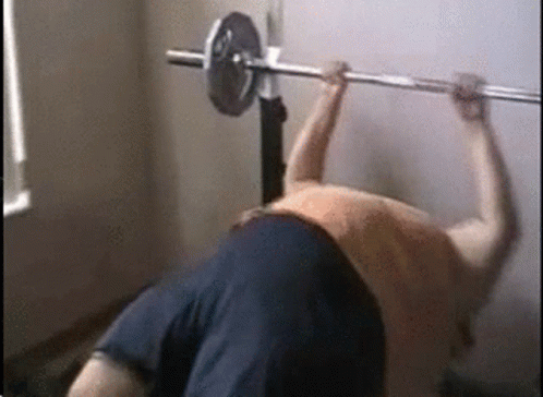 Man struggling to bench press a barbell on a weight bench during a workout.