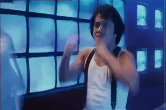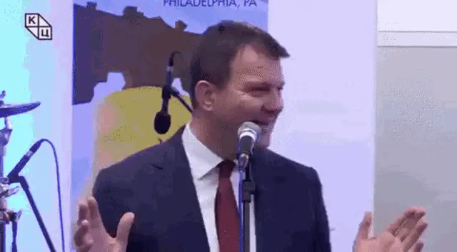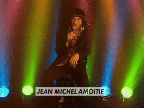 Kad Merad performs as Jean Michel Amoitie, singing into a microphone on a colorful stage.