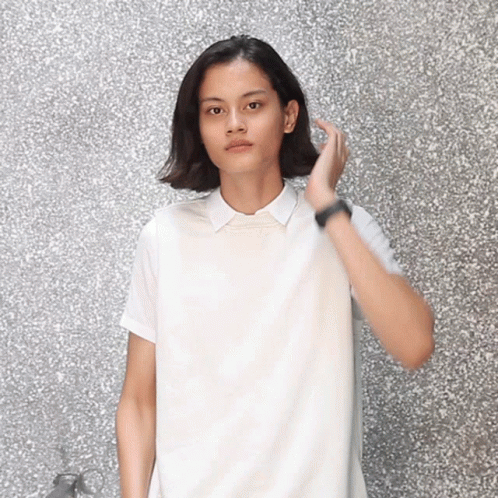 A young woman looks surprised, hands on her face, at Jakarta Fashion Week.