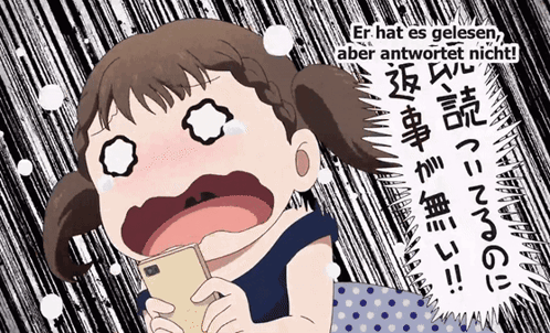 Kaguya-sama anime character distressed by a message read but not replied to on her smartphone.