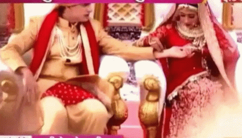 Kaira, Kartik, Naira, Shivin, Shivangi, and Mohsin share a tender moment, holding hands during their wedding ceremony.