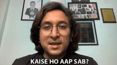 Appurv Gupta greets viewers with 'Kaise Ho Aap Sab?' in front of a wall of framed pictures.