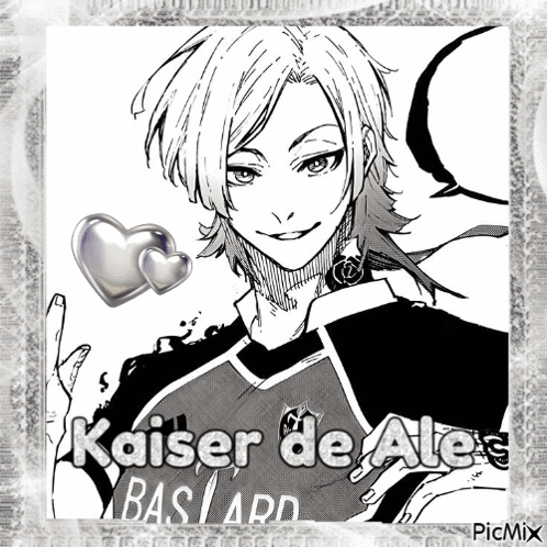 Black and white drawing of Kaiser de Ale, a character from the manga/anime series Blue Lock.