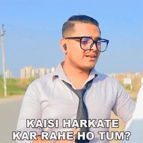 Prince Pathania asks "Kaisi Harkate Kar Rahe Ho Tum?" while wearing glasses and a tie.