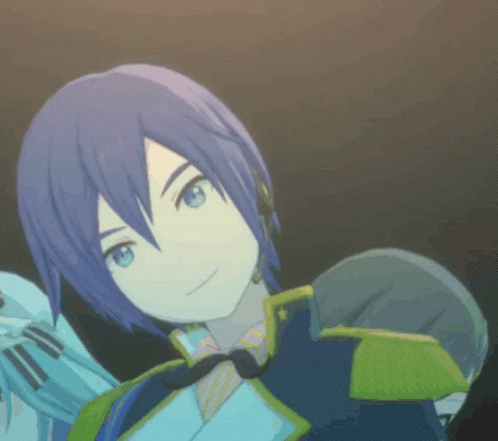 Kaito Vocaloid smiling, wearing his blue and green outfit from Project Sekai.