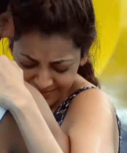 Kajal Agarwal appears distressed, possibly crying, and covers her face in a scene from 'Abba Appu'.