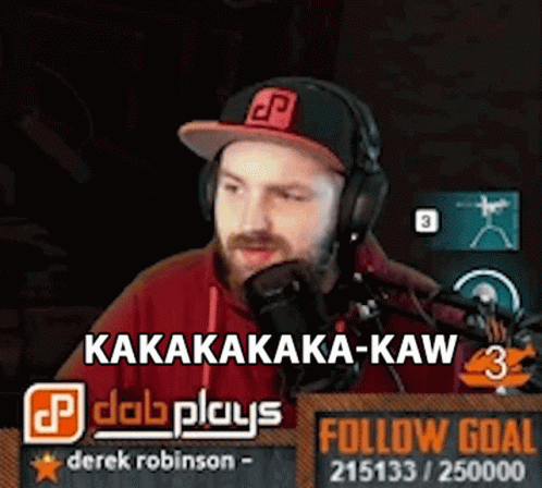Dab Plays makes a funny 'Kakakakaka-Kaw' sound into a microphone while wearing headphones and a hat.