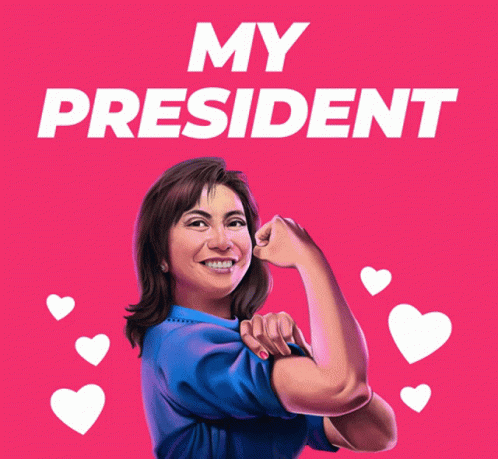 Leni Robredo, the Kakampink icon, flexes her bicep with a smile, surrounded by hearts and the text 'MY PRESIDENT'.