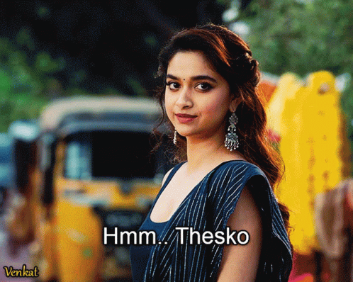 Keerthy Suresh from the 'Kalavathi' song, with 'Hmm.. Take it' caption.