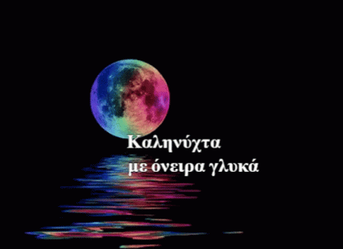 A beautiful rainbow moon reflects on the sea with a good night message and sweet dreams.