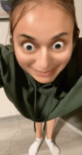 Kalligraphy Pathofakira, possibly Jessie, makes a funny and scary wide-eyed expression directly at the camera.