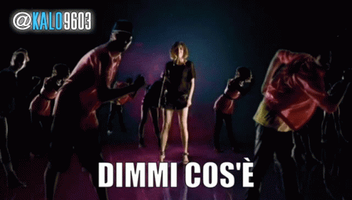 Italian singer Giorgia Todrani performs her song 'Dimmi Cos'è', featuring dynamic visuals and lyrics.