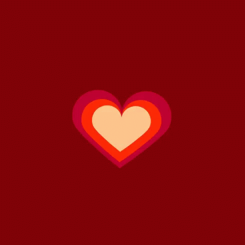 Animated hearts pulse on a red background, symbolizing love and affection.