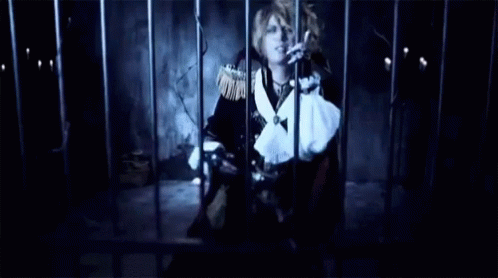 Kamijo of Versailles in a dark, caged setting, embodying a vampire aesthetic for 'Symphony Of The Vampire'.