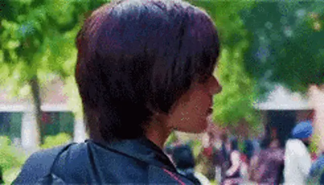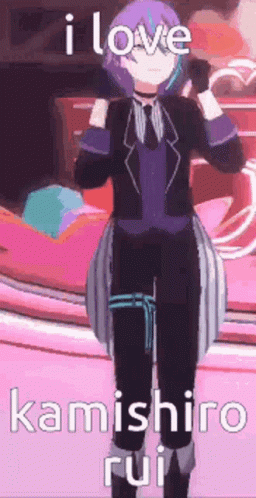 Kamishiro Rui from Project Sekai performs an energetic dance in a vibrant pink setting.