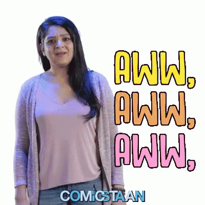 Kaneez looking sweet and emotional, reacting with an 'Aww' expression, from Comicstaan.