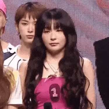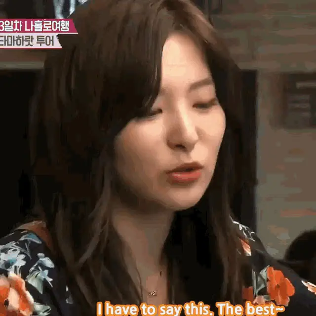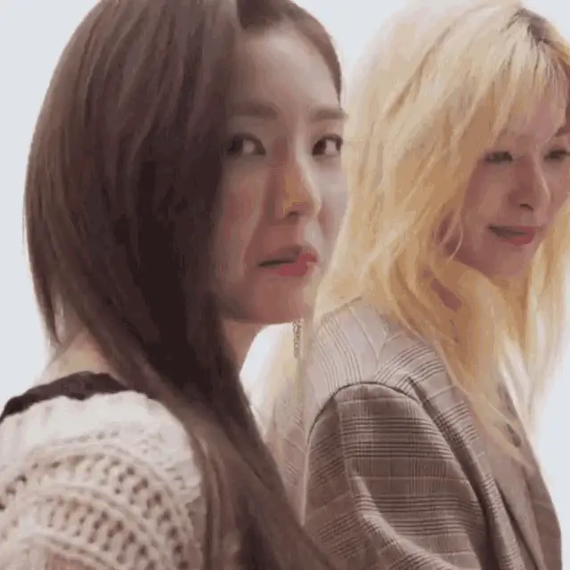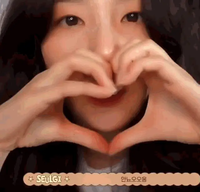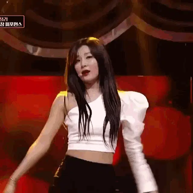 Red Velvet's Kang Seulgi (Seulbear) with red hair, wearing a black top and gold accessories, waves to the camera.