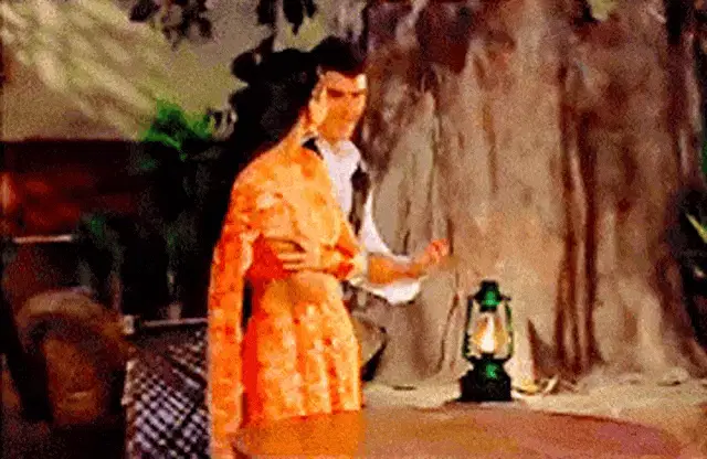 Aishwarya Rai in a green saree talking to another woman, likely Tabu or Meenakshi, from Kannamoochi Yenada.
