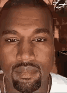 Kanye West makes a distinctive pouty or fish lips expression, looking directly at the camera.