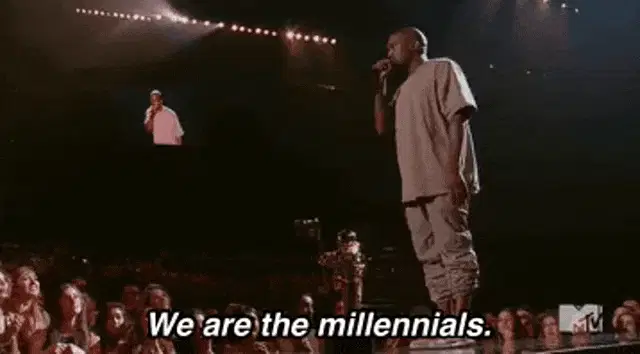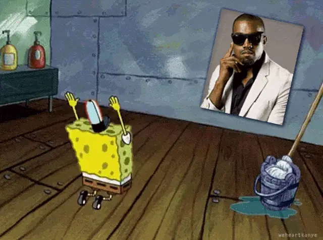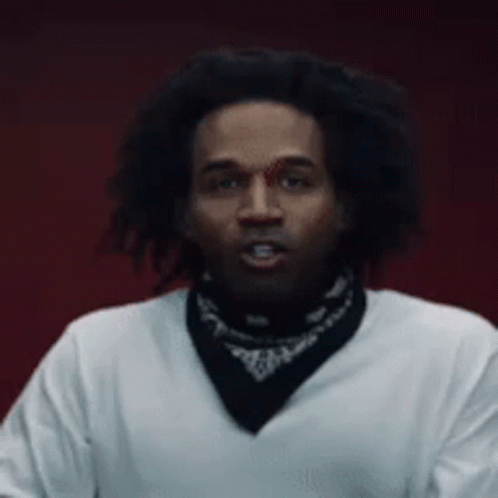 Kanye West's face on Kendrick Lamar's body, wearing a white shirt and black bandana, moving his head.