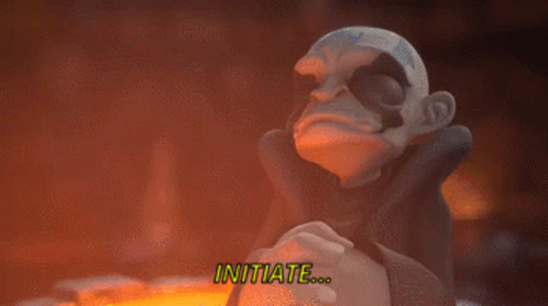 Kaos from Skylanders dramatically declares 'Initiate... Plan Z!!!' in a fiery setting.