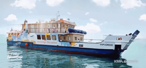 Explore the KMP Komodo ferry, an ASDP Indonesia vessel, showcasing its exterior on water and comfortable reclining seats inside.