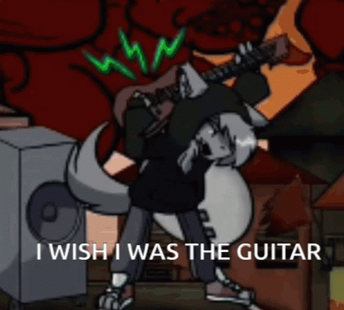 Kapi, the wolf-like character from FNF, rocks out on an electric guitar with a speaker nearby.