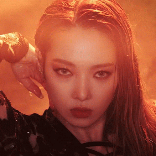 Kard Somin's fierce close-up, showcasing her striking makeup and intense gaze.