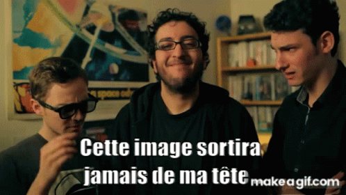 Karim Debbache and two friends react to an unforgettable image, with the caption "This image will never leave my head."