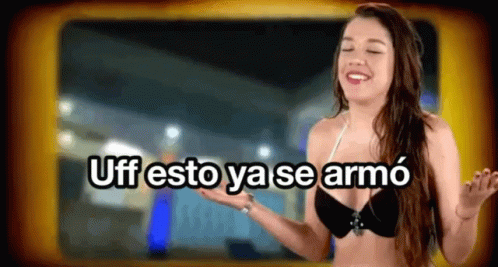 Karime Pindter, known as Karime, speaks while wearing a bikini top, with the caption 'Uff esto ya se armó'.