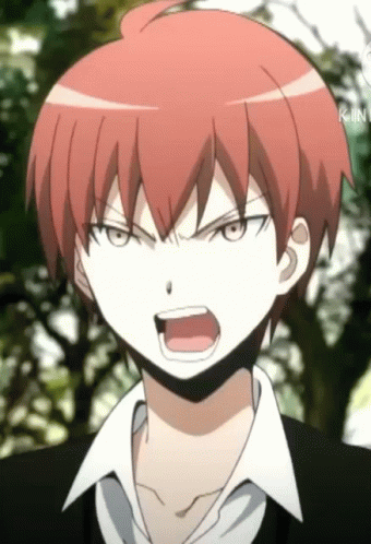 Karma Akabane from Assassination Classroom with an angry, intense expression.