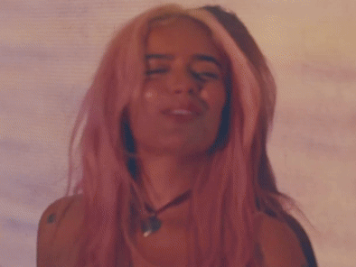 Karol G showcases her iconic pink hair and heart necklace, embodying the 'Bichota' vibe.