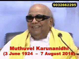 Muthuvel Karunanidhi, the former Chief Minister of Tamil Nadu, remembered with his birth and death dates.