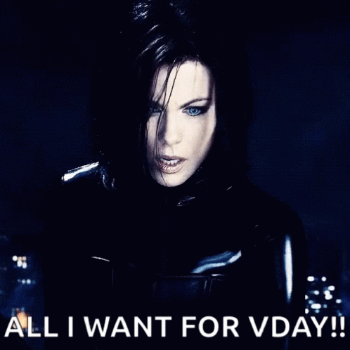 Kate Beckinsale as Selene in Underworld, expressing her Valentine's Day wish with an intense look.