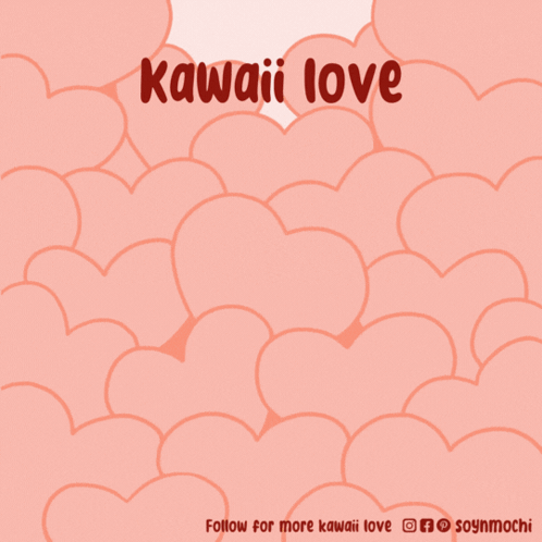 A cute hamster peeking out from behind pink hearts, with 'kawaii love' text, from soynmochi.