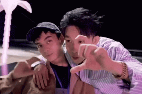 Kay Tran and Son Tung MTP pose together, forming a heart shape with their hands, sharing a moment of affection.