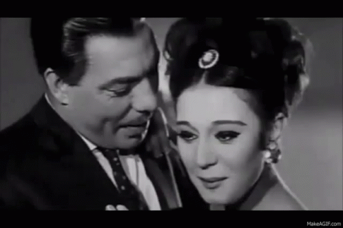 Farid Shawki and Madiha Kamel share a passionate kiss in a scene from the classic film '30 Youm Fel Segn'.