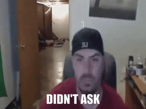 Keemstar, wearing a black cap and red shirt, reacts with a "Didn't Ask" gesture and walks away.